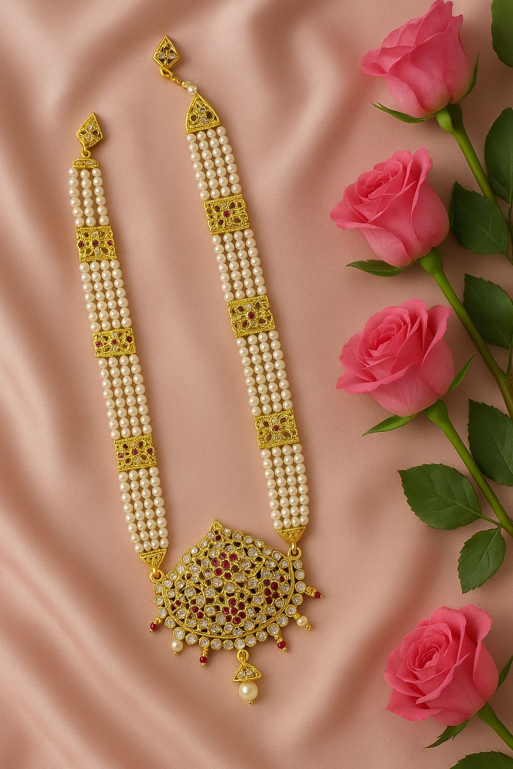 Elevate your traditional look with this regal Jadau Rani Haar — a masterpiece that reflects the splendor of India’s royal past.