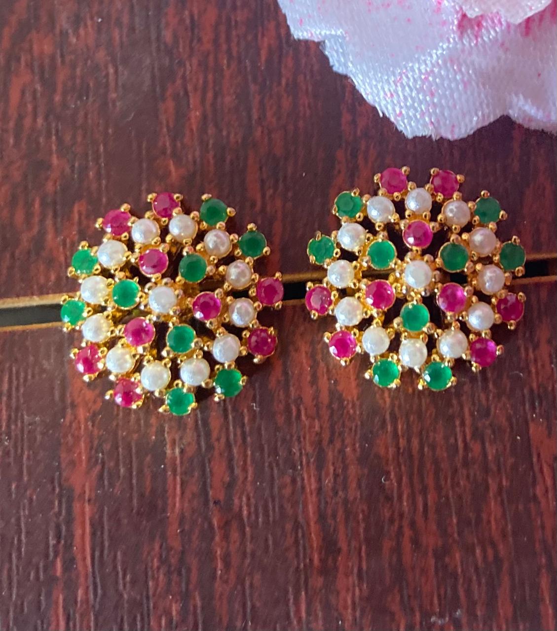 These multicolor real pearls studs are the perfect addition to any jewelry collection. With their vibrant hues and genuine pearls, they add a touch of elegance and sophistication to any outfit. Indulge in the timeless beauty and lustrous shine of these exquisite studs.